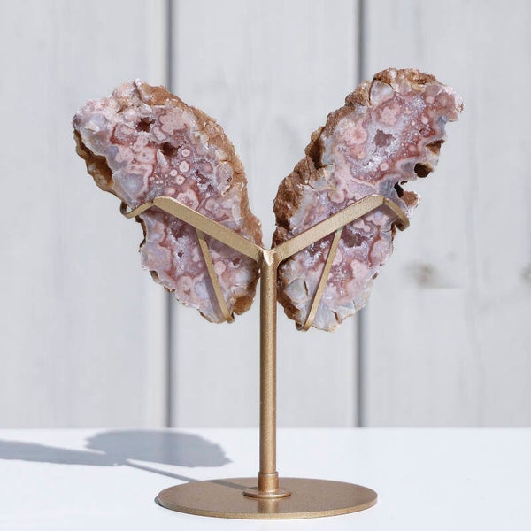 Roze Chalcedoon Vleugels Op Standaard #356c